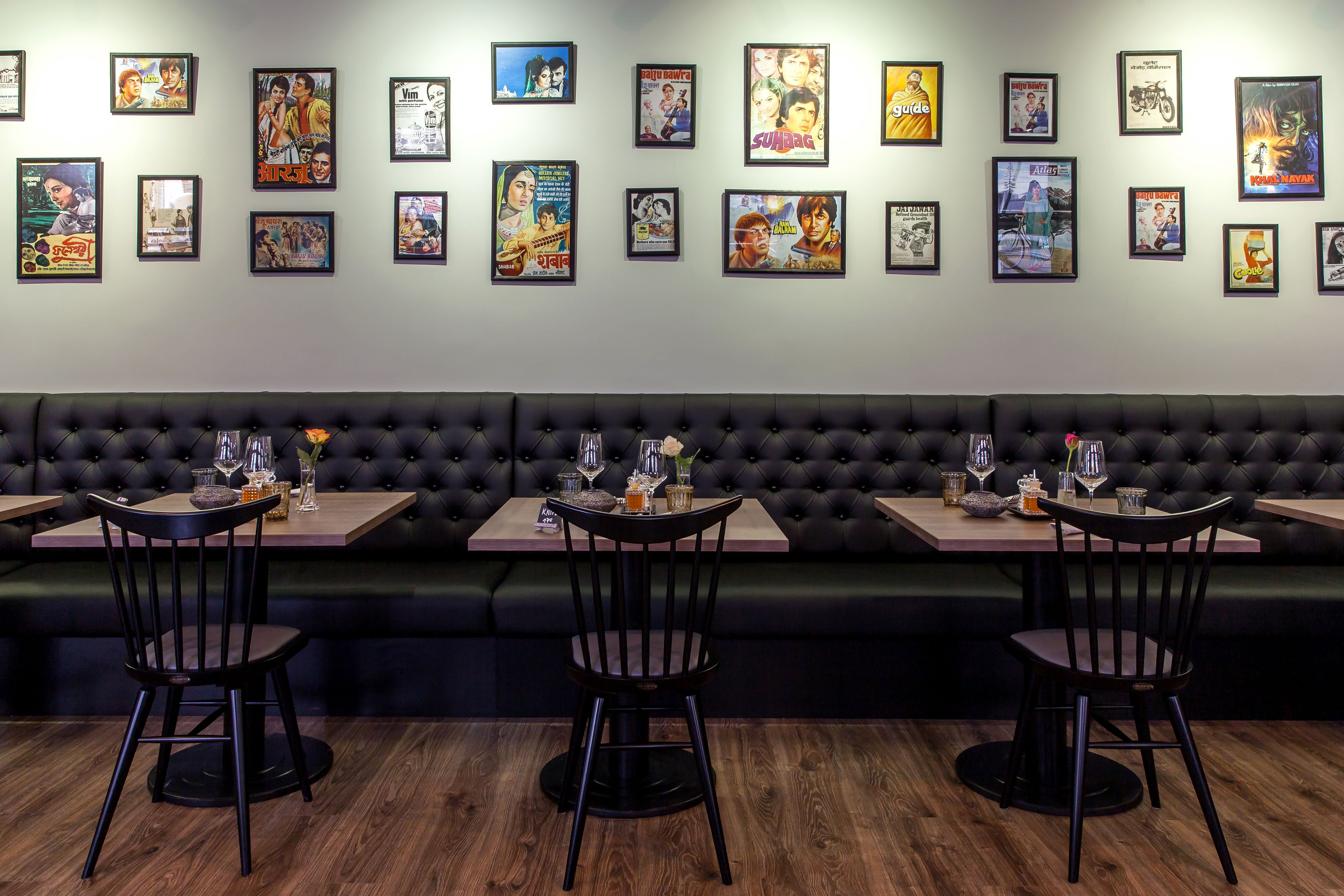 Die DNA des Lokals findet sich aber nicht nur in der Küche wieder, sondern auch im Interior, das von der gesamten Familie gemeinsam ausgesucht und zusammengestellt wurde. Um die Geradlinigkeit aufzubrechen, wurden 3-D Fliesen, indische Vintage-Werbeposter und Plakate von Bollywoodfilmen, gewählt, die auch zu den Lieblingsfilmen der Familie zählen.