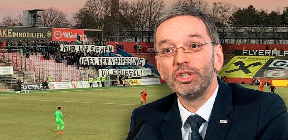 Ein Transparent sorgt in der Bundesliga für Schlagzeilen. Die mitgereisten Fans von Wacker Innsbruck enthüllten während der 0:3-Niederlage in der 19. Bundesliga-Runde bei der Admira ein Plakat, das sich klar gegen Innenminister Herbert Kickl (FPÖ) richtet.