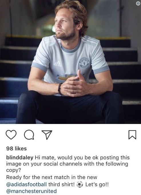 So deutlich wie bei Daley Blinds jüngstem Posting auf Instagram wird das aber für gewöhnlich nicht. Der Niederländer in Diensten von Manchester United präsentierte ein neues Ausweichtrikot seines Klubs.
