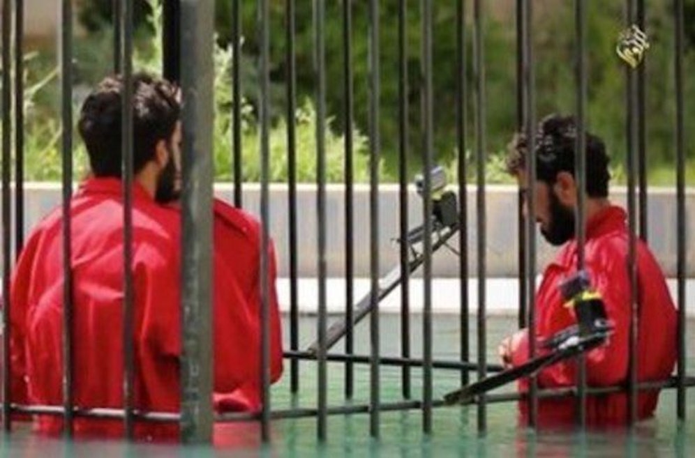 In der nächsten Szene werden fünf Männer in einen Metallkäfig mit zwei Kameras gesperrt, mittels Kran angehoben und in einem Schwimmbecken versenkt. Die Kameras filmen den Tod der Männer, die qualvoll ertrinken.