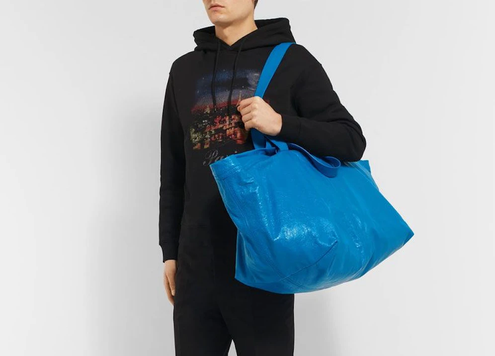 Es sieht aus wie eine IKEA-Tasche ist es aber nicht. Im berühmten Blau ist der ausladende Shopper ein absoluter Hingucker, denn wer würde hinter dem über 2.000 (!) Euro teuren Designerteil eine Inspiration erwarten, die man um ein paar Euro im nächsten schwedischen Einrichtungshaus kaufen kann?