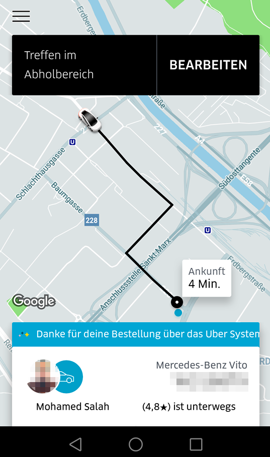 "Heute"-Leser Phillip und seine Freunde gönnten sich nach einem feuchtfröhlichen Abend in der Wiener Arena eine Uber-Fahrt heimwärts. Bei der Bestellung via Smartphone mussten die Wiener gehörig schmunzeln, denn ein gewisser Mohamed Salah lenkte den schwarzen Mercedes-Van, der sie sicher nach Hause brachte.