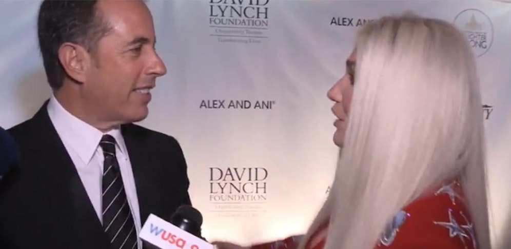 Seinfeld wirke sichtlich irritiert, sagte höflich "no thanks" und wich ängstlich vor der Blondine zurück. Nachdem die 30-jährige Sängerin enttäuscht abrauschte, grinste der Comedian wieder in die Kamera und sagte: "Ich habe keine Ahnung, wer das war".