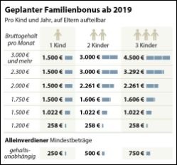 Es geht um bis zu 1.500 Euro jährlich, die Familien weniger an Einkommens- beziehungsweise Lohnsteuern bezahlen. Vorausgesetzt man verdient genug. Mehr als 950.000 Familien mit dem "Familienbonus Plus" könnten bis zu 1.500 Euro Steuer pro Kind sparen, wenn genug Geld in die Kasse kommt.