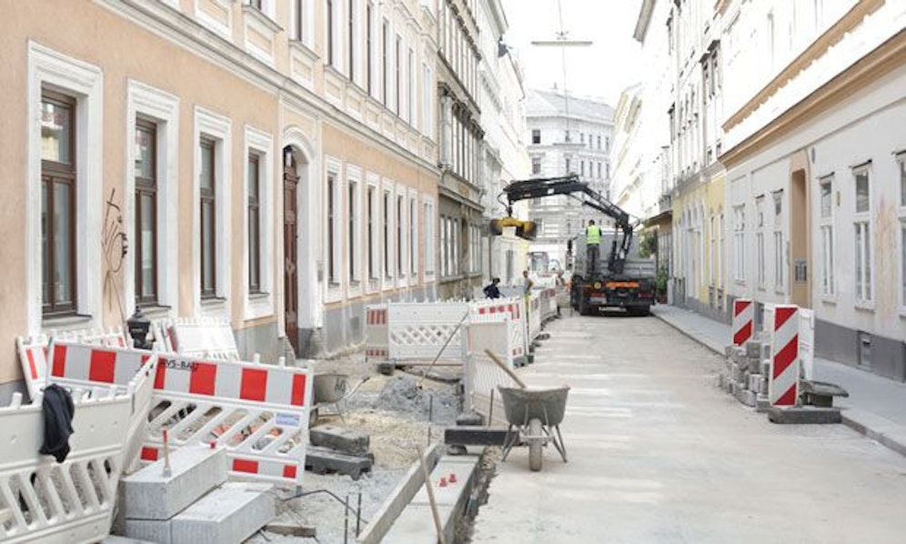 Der Abschnitt zwischen Margaretenstraße und Schönbrunner Straße in Margareten wird gerade umgebaut. "Der Verkehr wird auf einer Ebene stattfinden", sagt Margaretens Bezirkschefin Susanne Schaefer-Wiery (SPÖ). Randsteine gibt es in der engen Gasse dann keine mehr.