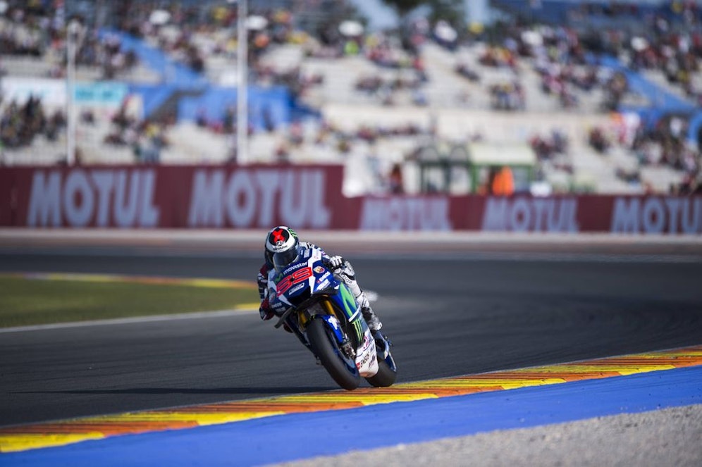Pole-Setter Jorge Lorenzo fuhr in seinem letzten Rennen für Yamaha vorne davon. Der Spanier knallte eine schnellste Runde nach der anderen auf den Asphalt von Valencia. Lorenzo wird in den kommenden Jahren für Ducati an den Start gehen.