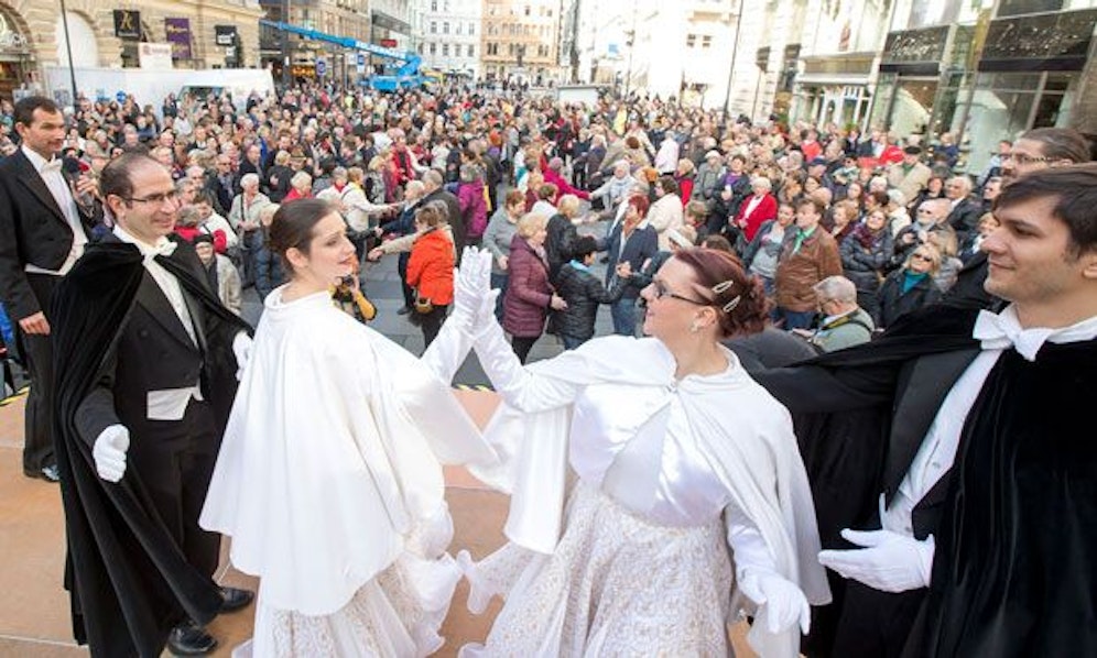 Traditioneller Tanz am Graben um 11.11 Uhr: Die 30 Wiener Tanzschulen luden zum Beginn der "fünften Jahreszeit" zur größten Quadrille der Welt in die City. Hunderte Wiener und Touristen folgten der Einladung.