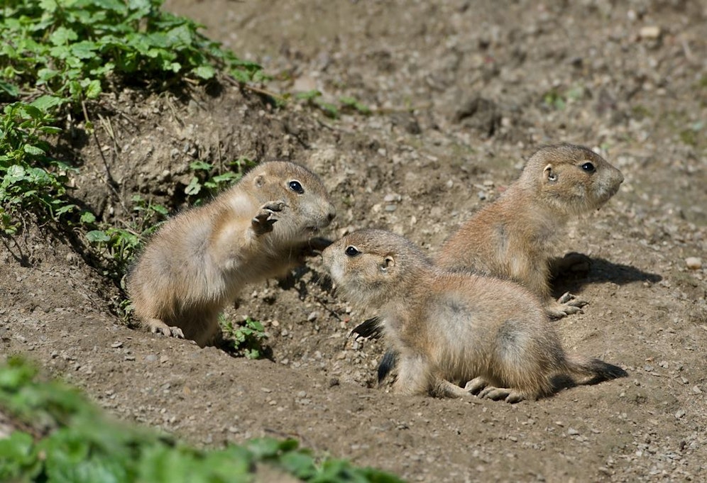 Die in Nordamerika heimischen Präriehunde sind mit 30 Zentimetern nur halb so groß wie ihre heimischen Verwandten, die Murmeltiere. Um vor Feinden zu warnen, stoßen sie einen bellenden Ruf aus, was ihnen auch den Namen eingebracht hat. Präriehunde sind äußerst gesellig. Sie leben in Familivenverbänden, die widerum Teil riesiger Kolonien werden können. Die Tiere pflegen sich gegenseitig das Fell, spielen miteinander und betreuen die Jungtiere gemeinsam.