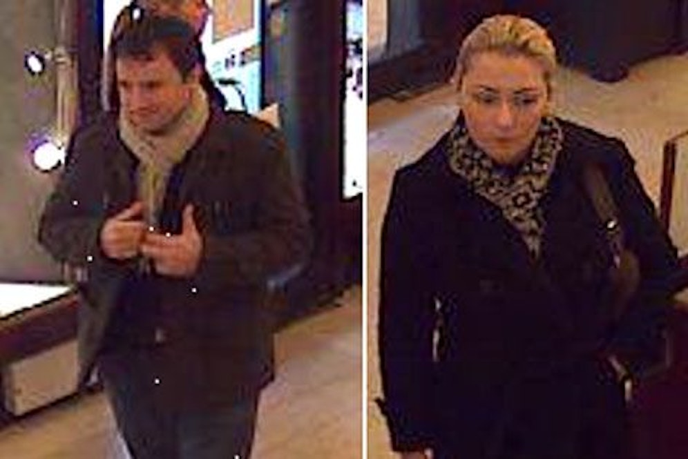 Der Mann ist etwa 35 Jahre alt und rund 1,80 Meter groß, schlank und hat kurzes, gewelltes Haar. Er sprach gebrochen Deutsch, vorwiegend Englisch und kommt vermutlich aus Osteuropa. Bekleidet war er mit blauen Jeans und schwarzer Jacke. Die Frau ist ca. 30 Jahre alt, etwa 1,70 Meter groß und ebenfalls schlank. Sie hat blondes, schulterlanges Haar, eine unreine Haut, die überschminkt war, und ihre oberen Schneidezähne sind besonders auffällig. Sie war mit einer schwarzen, knielangen Jacke bekleidet und sprach nur gebrochen Englisch.