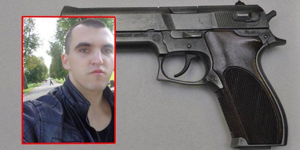 Bezüglich des noch flüchtigen mutmaßlichen Täters Arvydas S. (20) besteht ein Haftbefehl, nach ihm wird international gefahndet. Bei dem toten Täter fand die Polizei überdies die oben abgebildete Waffe, die sich als gut gemachte Spielzeugpistole entpuppte.