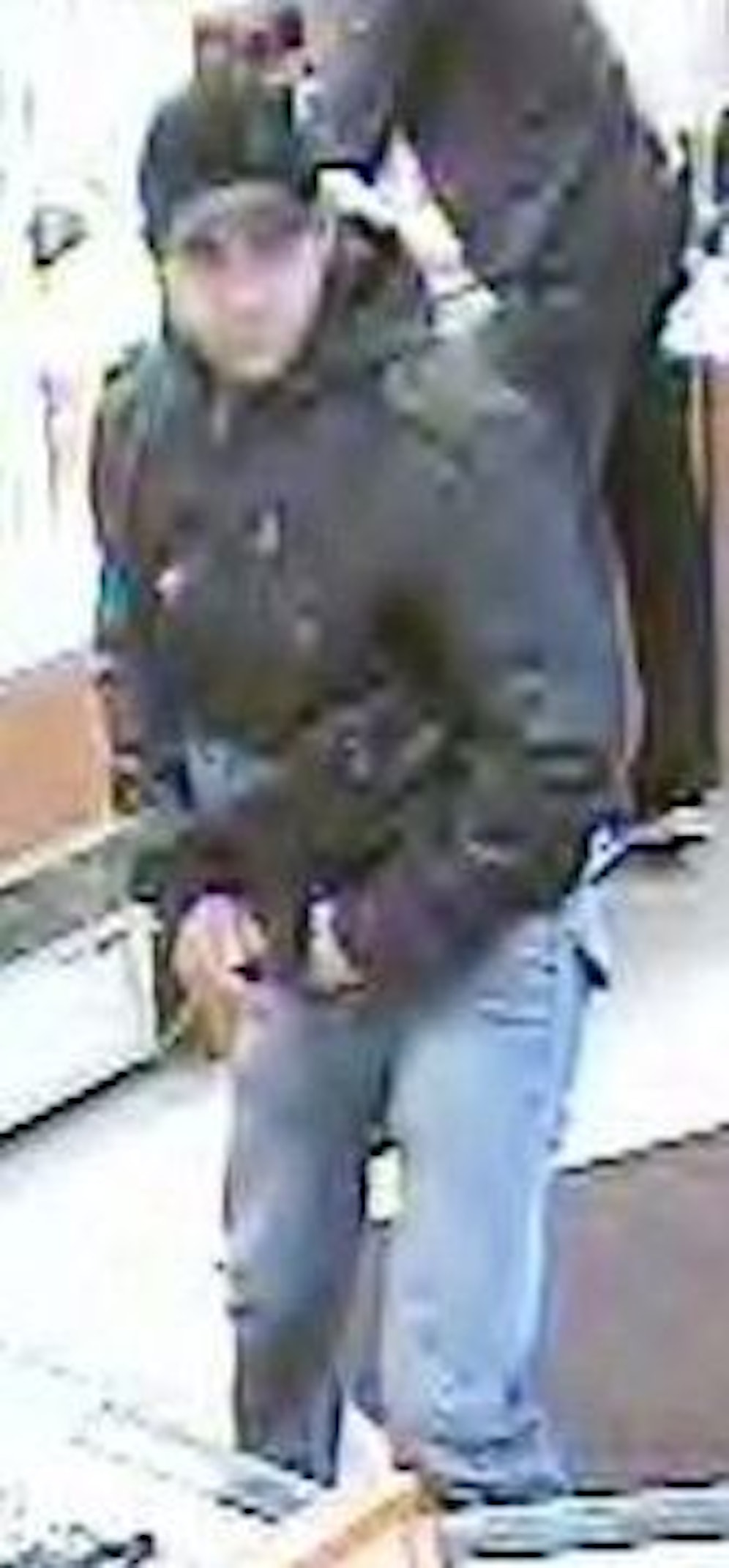 1) Männlich, circa 20 bis 30 Jahre alt, etwa 175 bis 180 cm groß, schlank, südländischer Typ, dunkle Haare, dunkle Bekleidung, helle Schirmkappe, dunkle Schuhe, dunkle Handschuhe, bewaffnet mit silberfarbener Pistole