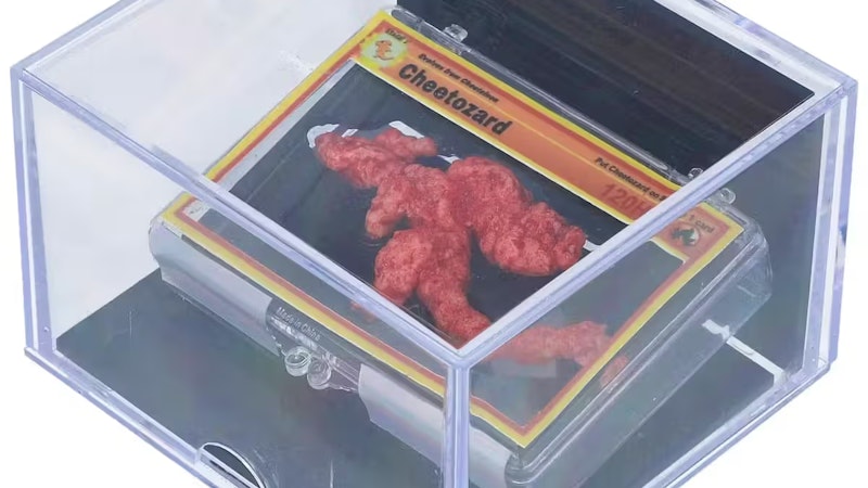 Bei dem "Cheetozard" handelte es sich um "einen fünf Zentimeter langen Flamin' Hot Cheeto in der Form des Pokémon Charizard, der auf einer speziell angefertigten Pokémon-Karte befestigt und in einer durchsichtigen Aufbewahrungsbox verpackt ist", hieß es in der Beschreibung des Auktionshauses.