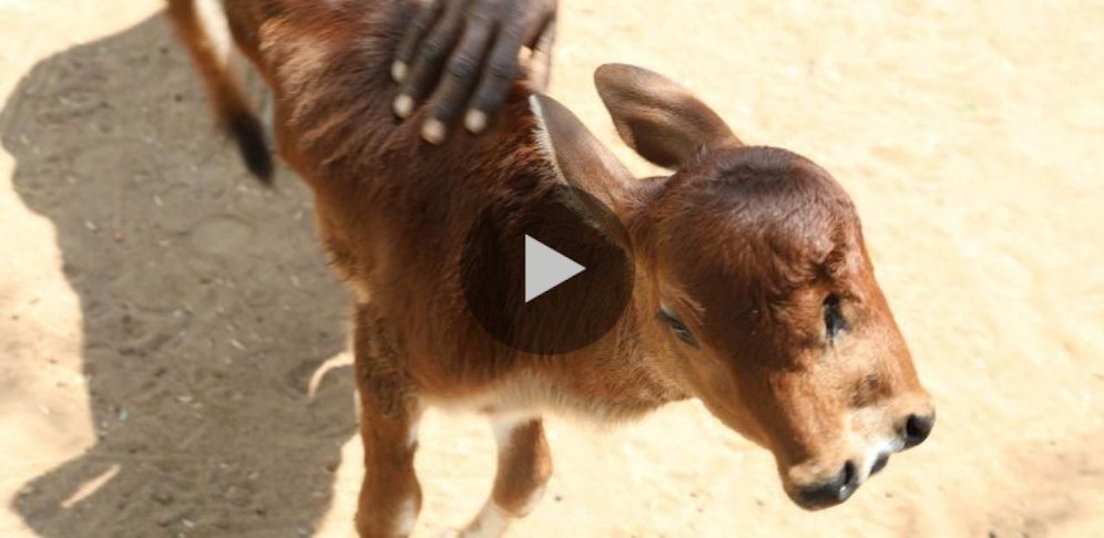Das ungewöhnliche Jungtier erblickte am 10. August in der Gemeinde Nalavur im Süden Indiens das Licht der Welt. Sein Aussehen schockte die Dorfbewohner – sein Kopf scheint über dem Maul in Zwei gespalten zu sein. Seine drei Augen und zwei Schnauzen machen das kleine Rind zu einer besonderen Attraktion im Dorf.