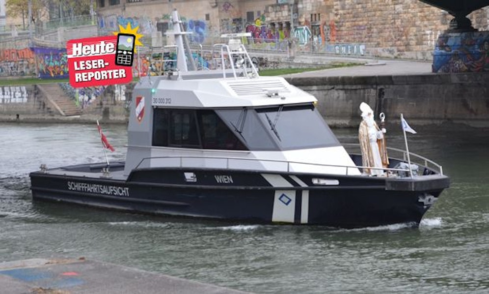 Am 6. Dezember wird der Heilige Nikolaus gefeiert. In Wien kam der rauschebärtige Mann am Samstag nicht mit dem Flieger oder der Bahn, sondern zu Wasser an. Ein Leserreporter knipste seine Ankunft bei der Urania am Wiener Donaukanal.