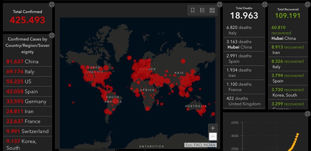 Eine Karte der Johns Hopkins Universität zeigt, wie sich das Virus ausbreitet. Wir haben den Stand am Mittwoch im Video oben zusammengefasst.
