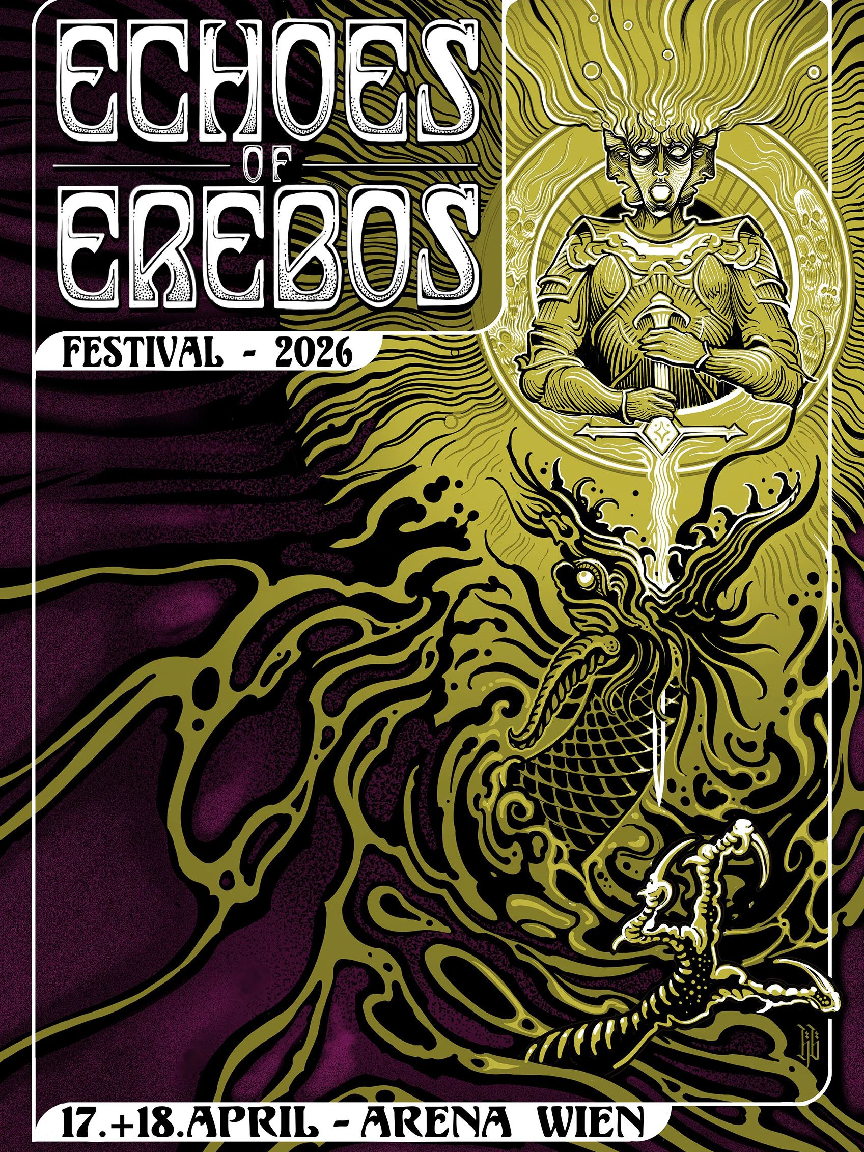 Am 17. und 18. April 2026 geht das ECHOES OF EREBOS Rockfestival in die 3. Runde. Erstmals in den altehrwürdigen Hallen der Arena Wien werden an zwei Festivaltagen zwölf nationale und internationale Bands die Bühne zum Beben bringen.