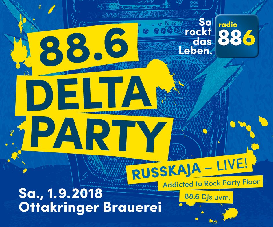 ...zur ersten exklusiven 88.6 Delta-Party am Samstag, 1. September 2018 in der Ottakringer Brauerei. Die ist bekanntlich riesig und deswegen erwartet euch ein Abend der Superlative mit den 88.6 DJs auf drei verschiedenen Rockfloors, niemand geringeren als die österreichische Erfolgsband Russkaja live, eine Poledanceshow, die Partyband TrashBax und vieles mehr.