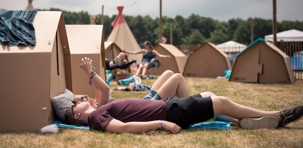 "Karton statt Plastik", lautet die Lösung des holländischen Unternehmens "KarTent". Die Firma entwickelt Zelte aus Karton, die vor allem für Festivals gut geeignet sein sollen. Vom Konzept ist auch Dominique Lauber, Präsident des Burning Mountain Openairs in Zernez, Schweiz, überzeugt. Wie die "Südostschweiz" berichtet, ist eine einjährige Versuchsphase zwischen dem Festival und dem holländischen Zelthersteller geplant. In Österreich waren die kuriosen Kartonzelte im vergangenen Jahr auch schon auf dem Electric Love Festival vertreten.