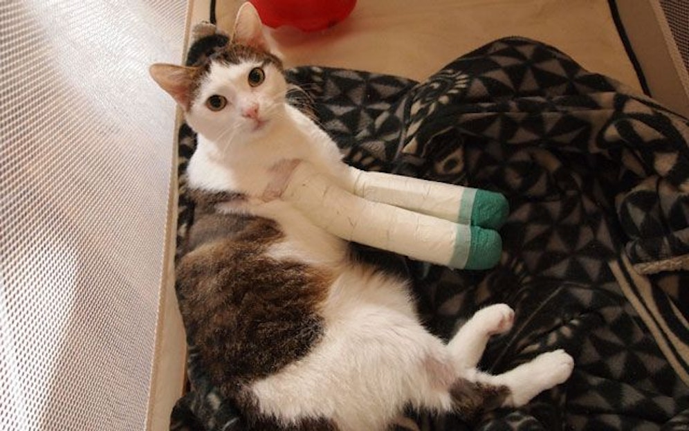 Die Wiener Hauskatze "Molli" ist eine Kämpferin! Nach ihrem Sturz aus dem 4. Stock lag sie mit gebrochenen Vorderpfoten und inneren Verletzungen zwei Wochen in einem Sauerstoffzelt - und überlebte!