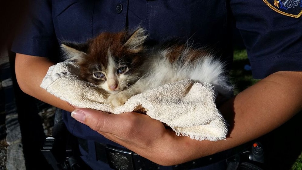 Die Beamten brachten das Kätzchen zum Tierarzt, der es untersuchte.