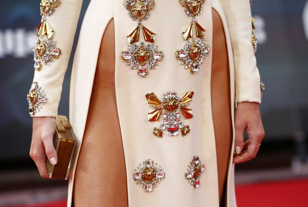 Das Highlight der Kreation offenbarte sich jedoch erst auf Hüfthöhe: Zwei enorme Schlitze enthüllten die blanken Beckenknochen der 18-Jährigen und gewährten beinahe freie Sicht auf ihren Intimbereich. Die Aufmerksamkeit aller Fotografen war Jenner mit diesem Outfit somit sicher.