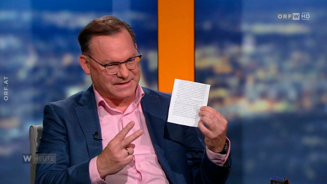 Auf die Kickl-Kritik an den falschen Großeltern angesprochen, kontert der "profil"-Journalist: "Man muss sagen, das Buch hat 250 Seiten und der Fehler betrifft gerade einmal zwei Absätze. Das ist wirklich nicht viel". Zur Verdeutlichung hielt er einen Ausschnitt der betreffenden Seite in die Kamera.