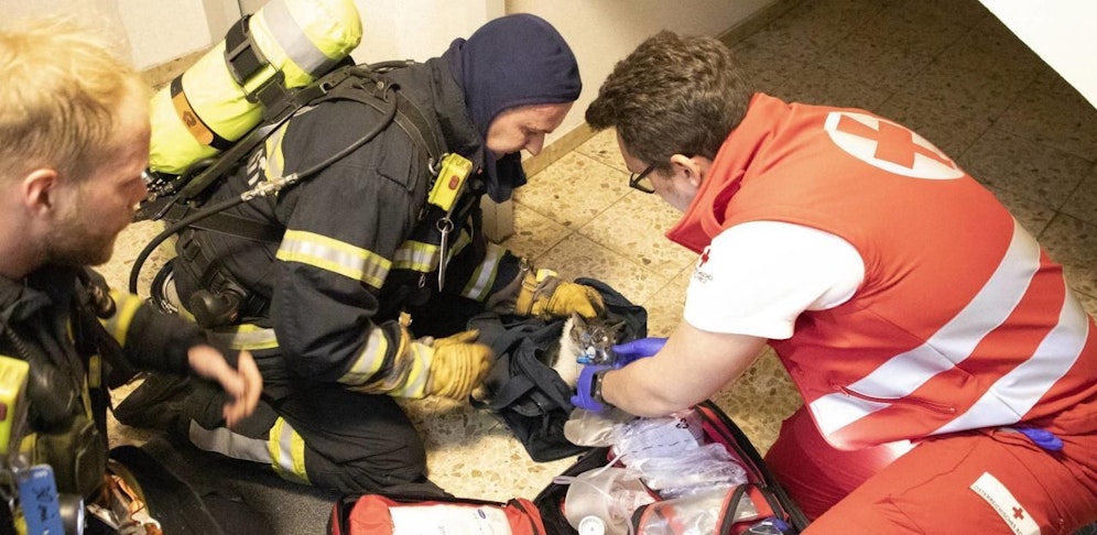 Die Feuerwehr konnte dann unter Atemschutz löschen. Dabei entdeckten die Florianis auch eine Katze in der Wohnung. Das verschreckte Tier biss zwar zunächst einen Feuerwehrmann, konnte dann aber doch eingefangen, in Sicherheit und mit Sauerstoff behandelt werden.