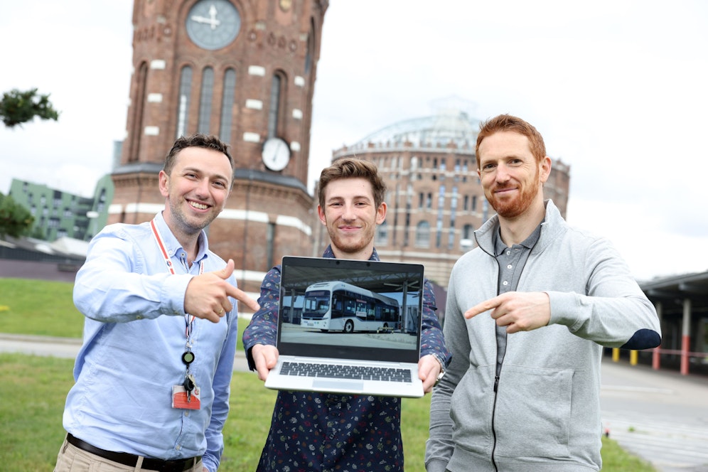 Die Wiener Stadtwerke-Gruppe will mit ihrer Wasserstoff-Strategie maßgeblich zur Klimaneutralität Wiens beitragen. Johannes Liebermann von den Wiener Linien, Tobias Gerdenits von den Wiener Netzen und Ernst Höckner von Wien Energie repräsentieren das konzernübergreifende Team für die Wasserstoff-Strategie der Wiener Stadtwerke-Gruppe.