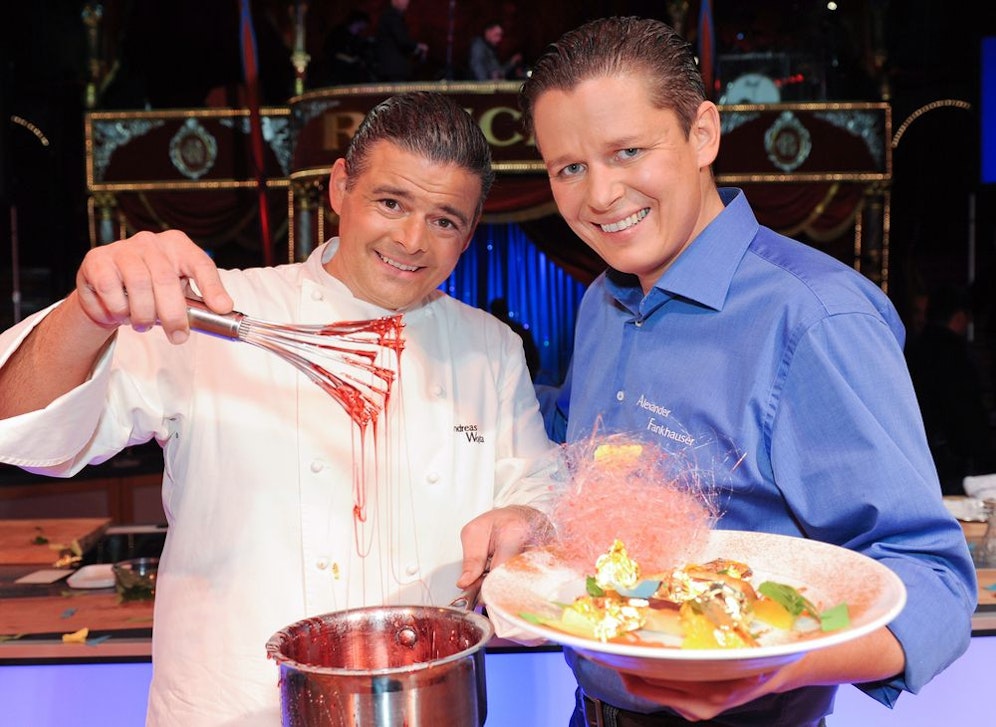 Leckere Gerichte präsentieren Andi und Alex in der Kochshow am Samstagabend aus dem Circus Roncalli auf . Unter Anleitung von Starclown David Larible probieren die beiden auch eine Teller-Jonglage.