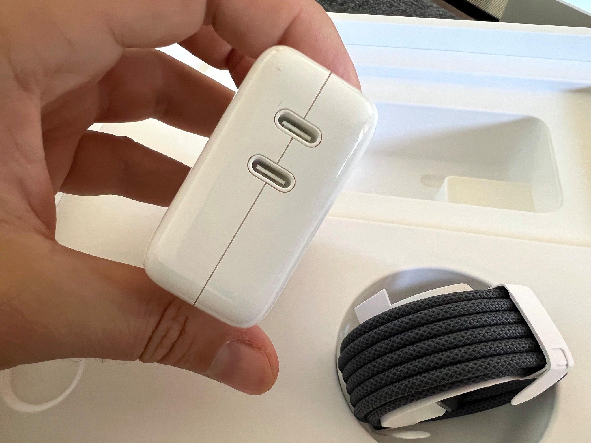 Und wie schnell geht es im Übrigen in die andere Richtung? In 30 Minuten war das Gerät von 0 auf 30 Prozent geladen. Dies mit dem 35-Watt-Aufladegerät mit zwei USB-C-Buchsen. Beim Kauf kann man auch einen Charger mit 67 Watt wählen. Damit geht das Laden dann schneller. Und Gamen? Ja, auch das hat bei unserem Modell funktioniert. "Baldurs Gate 3" lief mit den Einstellungen auf "Hoch" ohne Ruckeln mit akzeptabler Framerate.