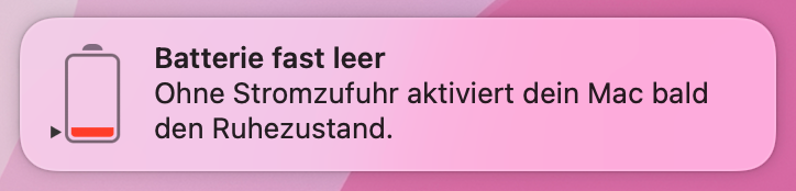 Es ist passiert. Die Statusanzeige des Akkus ist rot – die Energie wird weniger. Zehn Prozent sind übrig.