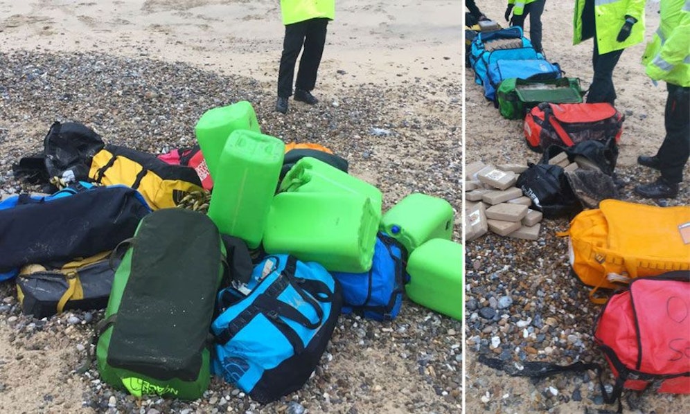 Zwei spektakuläre Drogenfunde an der Küste der englischen Grafschaft Norfolk sorgten am Freitag für große Aufregung. Taschen und Container mit insgesamt 360 Kilo Kokain wurde an zwei Stränden angespült.