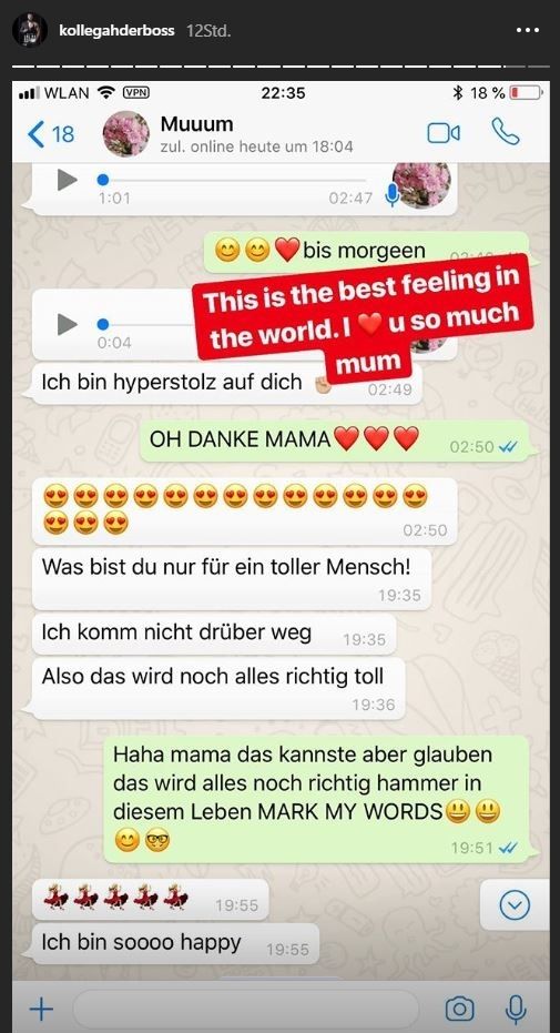 Auf Instagram veröffentlichte Kollegah die wohl größte Ehrung für ihn: eine Nachricht seiner Mama. Diese schrieb ihm auf Whatsapp, "Ich bin hyperstolz auf dich". Der Rapper schrieb zu dem Screenshot, "Das beste Gefühl der Welt". Nach den ganzen negativen Schlagzeilen, endlich eine nette Nachricht.