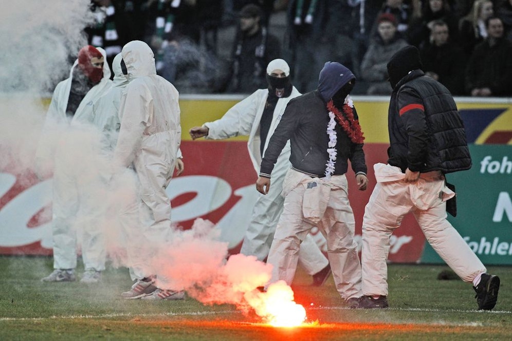 Nach dem Spiel brannten den Kölner Fans die Sicherungen durch. Etwa 30 Randalierer öffneten eine Fluchttür gewaltsam und strömten aufs Feld. Anschließend kam es zu einem Handgemenge mit den Sicherheitskräften. Mindestens zwei Kölner wurden noch auf dem Rasen verhaftet. Weitere Kölner Chaoten stürmten auf das Spielfeld Richtung Gladbach-Fans. Spieler und Offizielle flüchteten in die Katerkomben. Auch Gladbacher Fans bahnten sich anschließend ihren Weg aufs Grün. Es kam zu Schlägereien und Handgreiflichkeiten zwischen den Fangruppen. Einige Verletzte mussten behandelt werden.