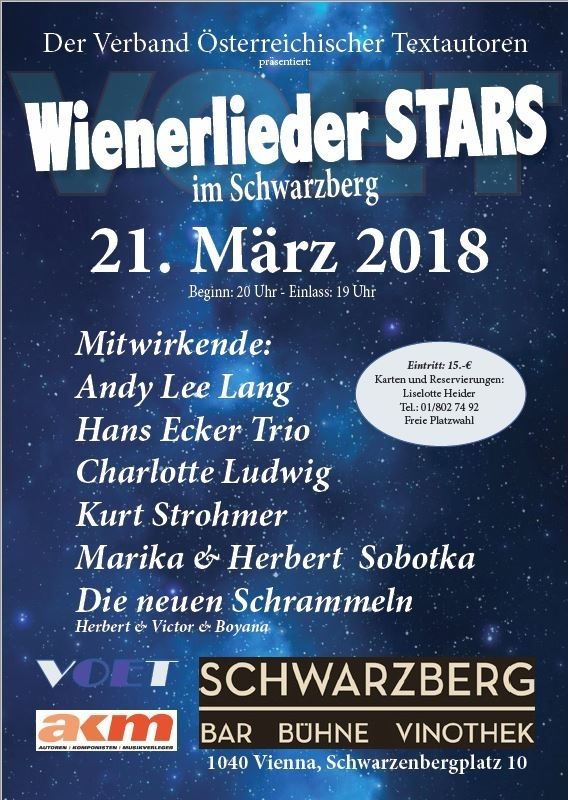 Andy Lee Lang, Hans Ecker Trio, Charlotte Ludwig, Kurt Strohmer, Marika & Herbert Sobotka, Die neuen Schrammeln - Herbert & Victor & Boyana.