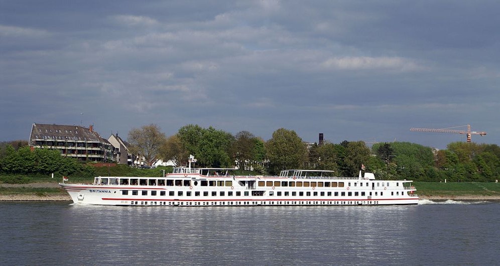 Die "Britannia" des deutschen Flussreisen-Veranstalters Nicko Tours lag Sonntagmorgen mit Schlagseite an einem Kai bei Zutphen. Feuerwehrleute pumpten Wasser aus dem Schiff, um zu verhindern, dass es sinkt. Das Kreuzfahrtschiff war auf dem Rückweg nach Köln von einer Tour nach Amsterdam und Antwerpen.