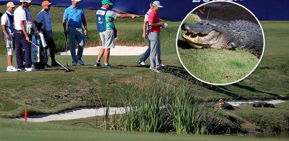 Dieses Jahr traf es Talor Gooch beim berüchtigten US-Turnier. Der Golfer musste sich seinen Ball ein paar Meter weit zurücklegen, weil sein Abschlag zu nahe bei zwei lauernden Krokodilen gelandet war.