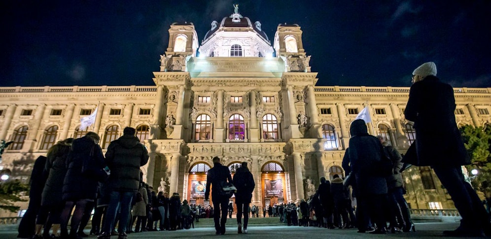 "Um diese Uhrzeit hat sonst alles zu. Hier gibt es Drinks und tolle Führungen", sagt Patrick Huber (29) in der endloslangen Schlange vor dem Kunsthistorischen Museum. "Das ist natürlich auch ein Magnet für viele junge Menschen", merkt der Rauchfangkehrer an. Er hat sein Ticket (16 Euro) schon lange vorher online gekauft.