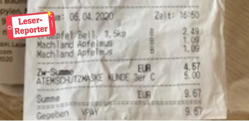 Zu Hause fiel ihm beim Blick auf die Rechnung auf, dass für die Masken fünf Euro in Rechnung gestellt worden waren. Allgemein war ein Unkostenbeitrag von einem Euro pro Stück kolportiert worden. "Heute"-Leser Christian hält fest, dass in diesem Fall ein Preis von 1,66 Euro pro Stück verrechnet wurden. Kurioses Detail am Rande: Der übrige Einkauf kostete dem Kunden gerade einmal 4,67 Euro und war somit günstiger als der Kauf der in Supermärkten verpflichtenden Masken.