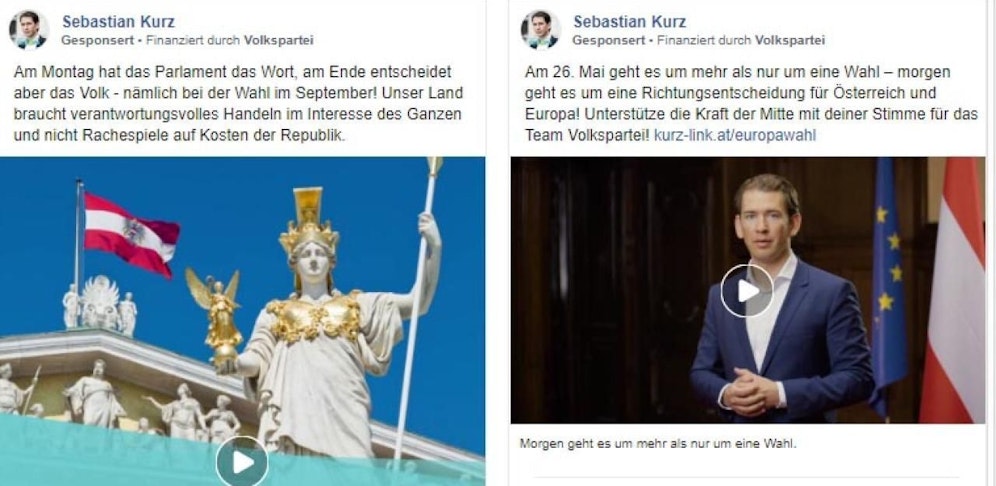 Neun Anzeigen mit dem Startzeitpunkt 30. April warben mit kurzen Slogans für Follower, unter den zuletzt geschalteten Ads finden sich aber vor allem Videos und Textbeiträge. Ein Statement der Volkspartei gegenüber "Heute" deutet bei den Anzeigenzielen auf einen Kurswechsel in den vergangenen Wochen hin: Man gebe "keinen Euro aus für das Gewinnen von Fans. Wir bewerben lediglich unsere Beiträge", heißt es aus der ÖVP. Ziel sei es, nach dem Misstrauensvotum noch verstärkt mit der Bevölkerung in Diskurs zu treten.