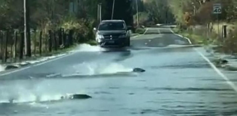 Nein, es ist keine Sinnestäuschung. Im US-Bundesstaat Washington schwimmen tatsächlich Fische auf der Straße. Besonders eindrücklich zeigt dies ein Video aus der Stadt Shelton. Über eine große Pfütze flitzen die Tiere auf die andere Straßenseite des Highway 101, wirbeln dabei ordentlich Wasser auf – und begeistern die Internetgemeinde.