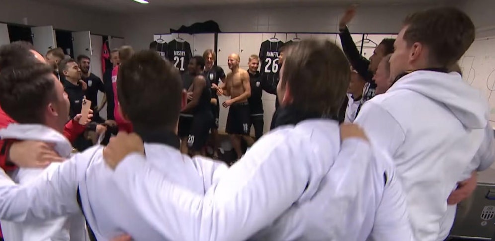 Denn der Stürmer ergriff im Spielerkreis in der Kabine das Wort, setzte zum mittlerweile legendär gewordenen Spieler-Gesang an, was Puls 4 mitfilmte.