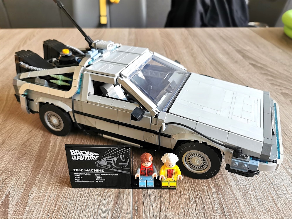 Der DeLorean kommt als Zeitmaschine in allen drei Kultfilmen der "Zurück in die Zukunft"-Trilogie vor, in jeweils leicht abgewandelter Form. Das neue Set honoriert diese Veränderungen, denn im letzten von elf Bauschritten kann der Bastler selbst bestimmen, ob der den originalen DeLorean aus Teil 1, den schwebenden Wagen mit eingeklappten Rädern aus Teil 2 oder gleich das aufgemotzte, etwas buntere Gefährt aus Teil 3 bevorzugt. "Heute" hat sich für das Original entschieden.