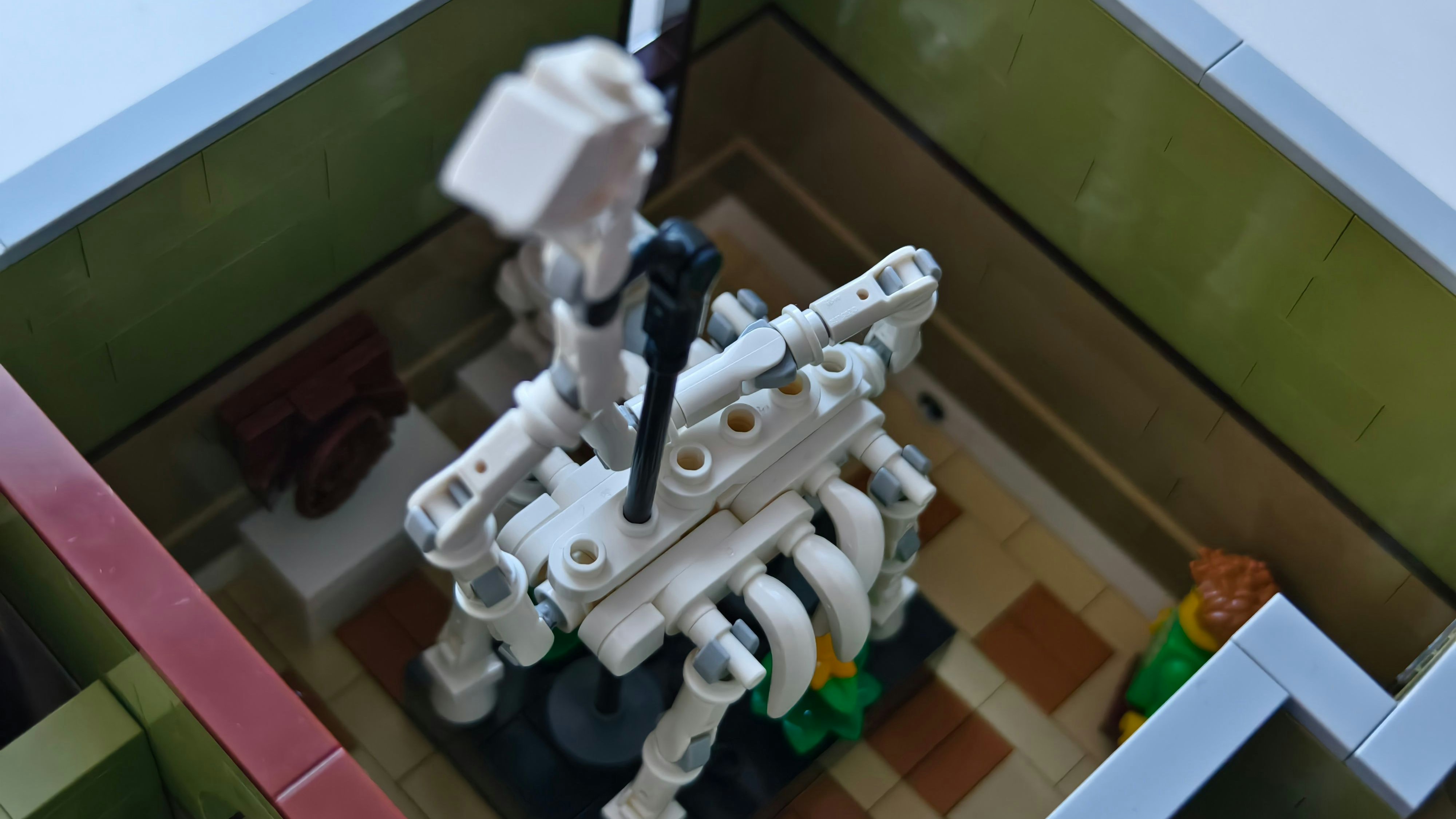 Man kann jedoch die Wand hinter dem Empfangstresen entfernen, sodass beide Räume leichter mit Minifiguren besucht werden können. Das Gleiche gilt für das Büro auf dem Dach. Dort lässt sich die gesamte Rückwand abnehmen. Wenn man bedenkt, dass sich LEGO mit der Modular Collection an Erwachsene wendet, schätzen wir die Bemühungen um die Zugänglichkeit für große Finger. Begeistert haben uns auch die vielen kleinen Details, so gibt es in einer Ecke etwa ein Mauseloch, doch nur wer das Modell zusammengebaut hat, weiß, dass sich darin auch ein kleines Stück Käse befindet.
