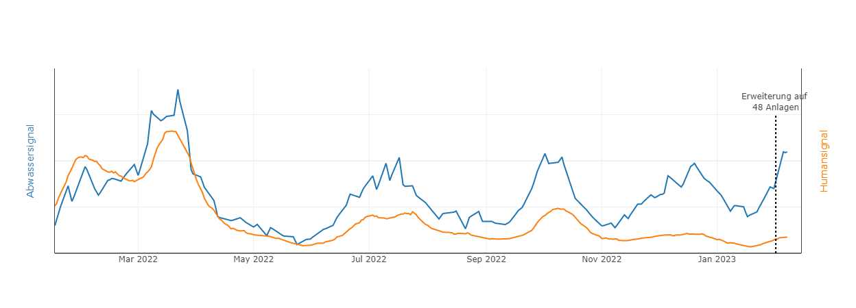 Anders lässt sich der enorme Unterschied zwischen der Kurve der Humantestungen und jener des Abwassermonitoring zumindest kaum erklären.