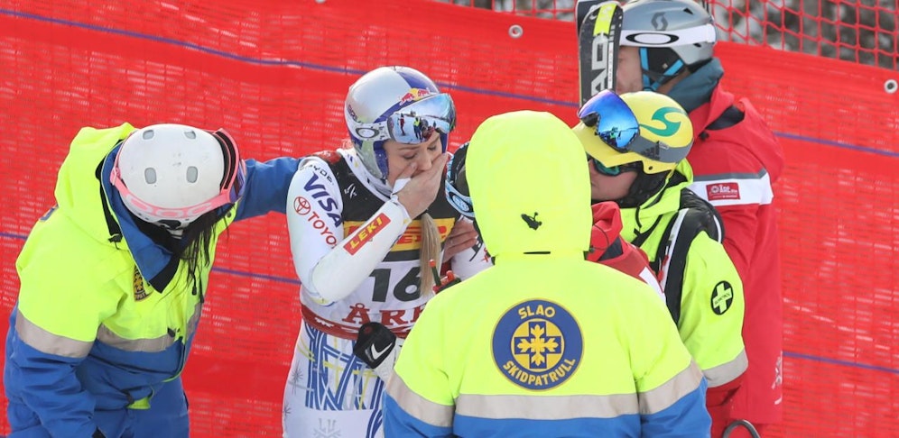Lindsey Vonn ist in ihrem wahrscheinlich vorletzten Rennen schwer gestürzt. Bei der Analyse im Zielraum konnte die Amerikanerin gar nicht hinschauen: "Mein Körper macht einfach nicht mehr mit!"