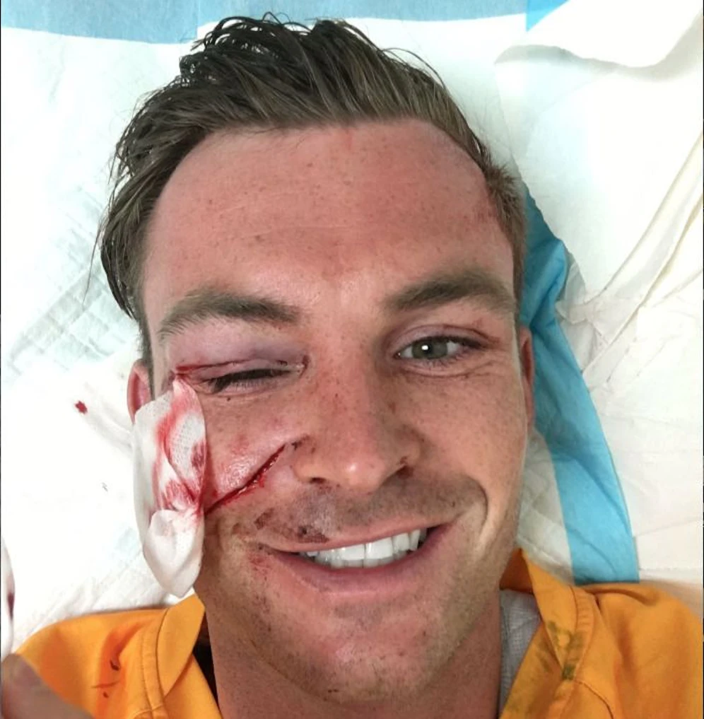 Eine tiefe Wunde klafft unter dem rechten Auge, zwei Stunden lang lag der Goalie im Spital unter dem Messer. Der gebürtige Linzer Pirmin Strasser, der derzeit in Neuseeland bei Waitakere United kickt, war in der letzten Partie von einem Gegenspieler brutal niedergestreckt worden. "Heute" zeigt er seine Verletzung.