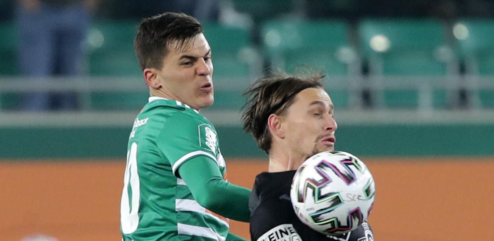 Rapid mühte sich, das Ruder herumzureißen. Fountas bei der Nachschuss-Chance nach einem Hammer von Murg Schwab aus 30 Metern im Abseits (60.) – dann schlug der Verletzungsteufel zu, es blieb am Ende bei der Punkteteilung mit drei Verletzten für die Gastgeber.