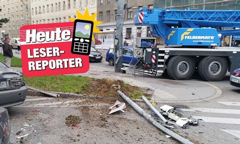 Samstagvormittag ist es gegen 09:40 Uhr auf der Kreuzung Geiselbergstraße/Leberstraße in Wien-Simmering zu einem spektakulären Zwischenfall mit einem Lkw gekommen. Der Fahrer fuhr mit seinem Kranwagen auf der Kreuzung im Kreis und beschädigte dabei mehrere geparkte Fahrzeuge sowie die Ampelanlage.