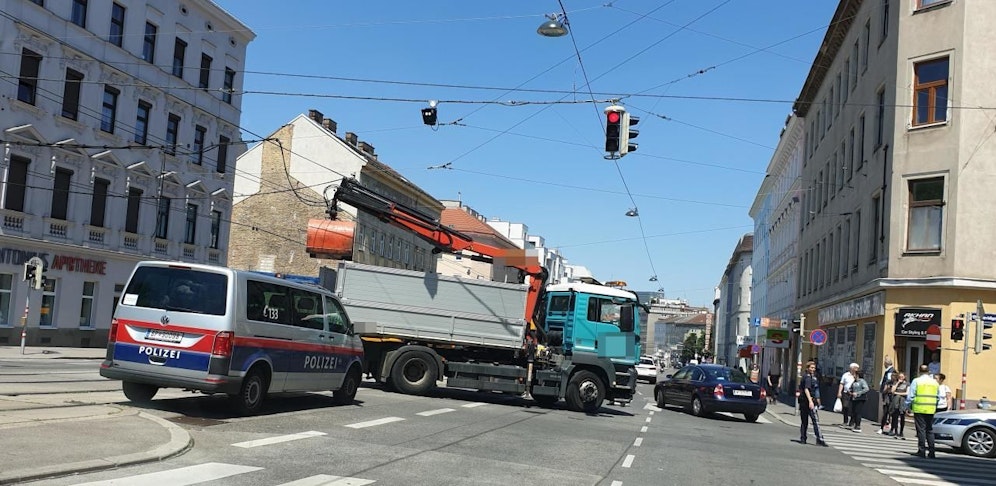 Kurz nicht aufgepasst, und schon war es passiert: Am Montag kurz nach 12 Uhr kappte ein Lkw laut Augenzeugen am Arthaberplatz die Oberleitung über der Straßenkreuzung. Das Fahrzeug blieb demnach mit einem Hydraulikkran im Netz der Stromleitungen hängen.